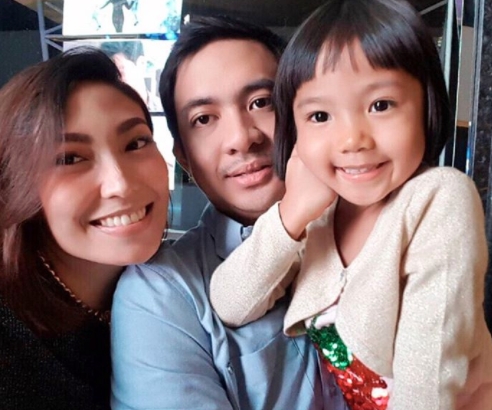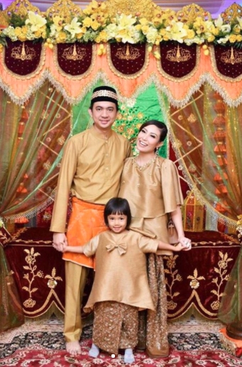 Mengenakan busana senada keluarga Datau ini tampil kece dan kompak bersama sang putri pertama.
