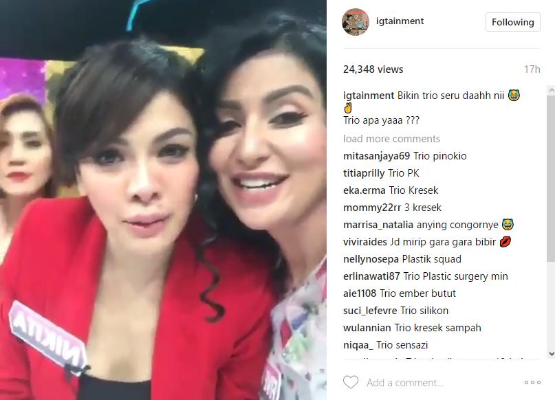 Ketiganya terlihat cantik, namun berbeda dengan tanggapan netizen. Mereka menyebut ketiga artis itu adalah perkumpulan wanita yang lakukan operasi plastik. "Trio oplas," seru netizen. "Trio plastik," seru lainnya.