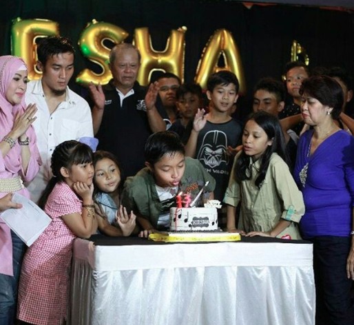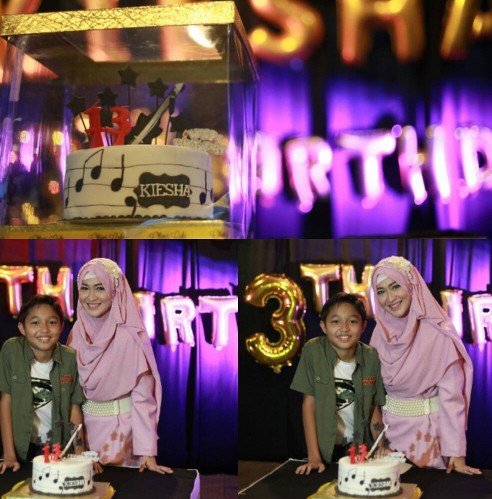 Puncak pesta ulang tahun Kiesha dirayakan dengan prosesi tiup lilin, angka 13 sebagai simbol umur jagoan kecil itu.