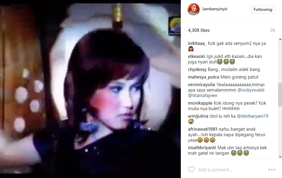 Melalui postingan yang diunggah ulang oleh akun @lambenyinyir, penampilan Ayu sangat berbeda. Dengan gaya jadul, rambut pendek Ayu membingkai wajahnya.