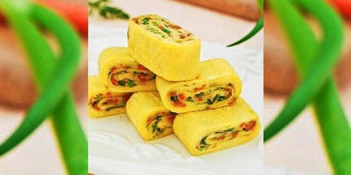 6. Biarkan di wajan selama beberapa menit hingga telur dadar gulung sayuran matang.
