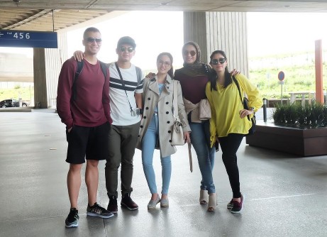 Tiba di bandara Paris, para pemain inti menyempatkan diri untuk 'mejeng' dulu.