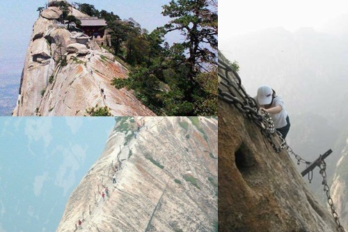 Untuk bisa minum teh di tempat ini, pengunjungnya harus memanjat tebing terlebih dahulu. Tempat minum teh yang ada di gunung Huashan, Huayin, China ini pada awalnya merupakan sebuah kuil Tao. Perjalanan yang ekstrim dan pasti melelahkan. Ada kemungkinan pengunjungnya jatuh terjun ke bawah jika tak mahir dalam mendaki. Ngeri kan..?