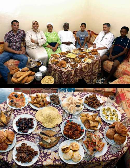 Foto ini menunjukkan keluarga Aazzab di Casablanca, Maroko, yang sedang menunggu waktu berbuka puasa di bulan Ramadan. Iftar atau berbuka puasa, menjadi momen bagi mereka untuk berkumpul dengan orang-orang tercinta.