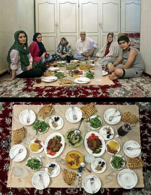 Sebuah keluarga muslim di Iran tengah menunggu berbuka puasa di Teheran. Saat azan magrib terdengar, mereka langsung menyantap hidangan yang telah disajikan.