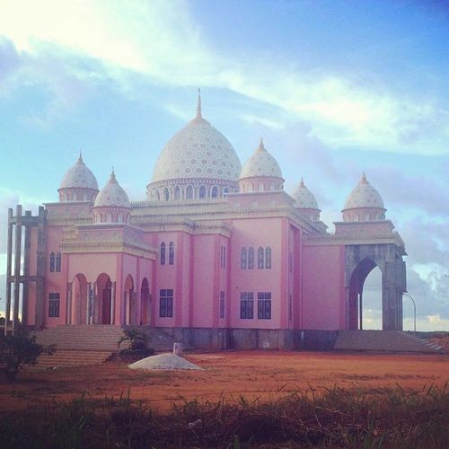 Seperti inilah wujud Masjid An Nur di Pulau Bintan yang berwarna serba pink.