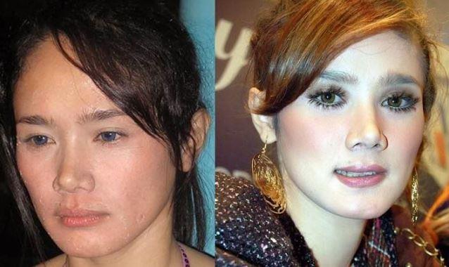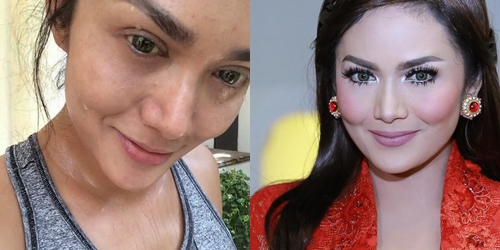 Intip bedanya perubahan rupa selebriti sebelum dan sesudah memoleskan make up ke wajahnya berikut ini.