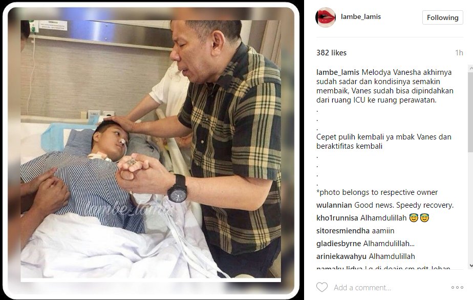 Hal itu diketahui melalui postingan akun @lambe_lamis belum lama ini. Meskipun masih terbaring lemah di ranjang rumah sakit, Vanesh sudah membuka matanya. Sambil menggenggam tangan Vanesh, seorang pendeta terlihat sedang mendoakan untuk kesembuhannya.