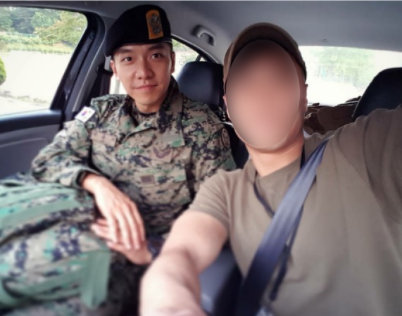 Kelihatannya, Lee Seung Gi baru saja mengambil jatah liburnya di kemiliteran dan hendak kembali ke markas militer. Tidak mau melewatkan kesempatan tersebut, sang supir pun meminta Lee Seung Gi untuk berfoto selfie dengannya.