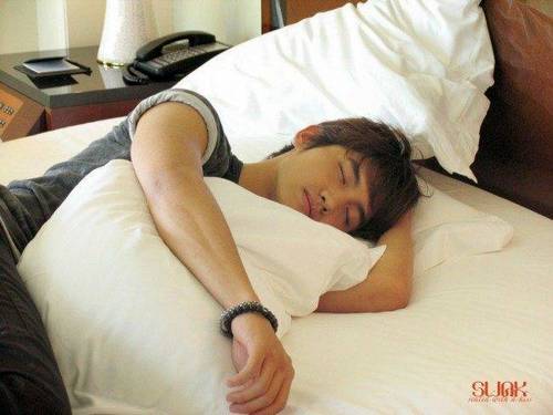 Yunho memiliki kebiasaan aneh sewaktu tidur, yakni membuka sedikit kedua matanya sekaligus membuka mulutnya lebar-lebar. Kok jatuhnya serem ya?