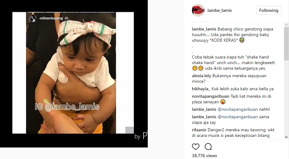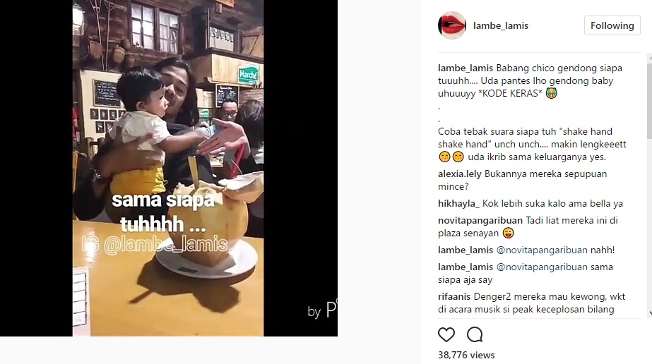Melalui postingan itu, Chico terlihat tengah menggendong bayi lucu dengan setelan baju berwarna putih dan kuning yang diketahui adalah keponakan Mikha. Sontak, akun gosip @lambe_lamis menyebut Chico memberi kode untuk segera memiliki anak. "Babang chico gendong siapa tuuuhh.... Uda pantes lho gendong baby uhuuuyy *KODE KERAS*," tulis akun gosip itu dalam caption postingannya.