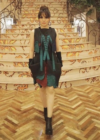 Perpaduan warna hitam dan hijau dalam dress pelantun "Sementara Sendiri" ini menghasilkan kesan elegan bukan?
