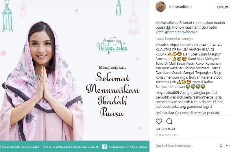 Mengenakan scarf berwarna pink sebagai penutup kepala, istri Glenn Alinskie ini juga memohon maaf lahir dan batin untuk para fans.