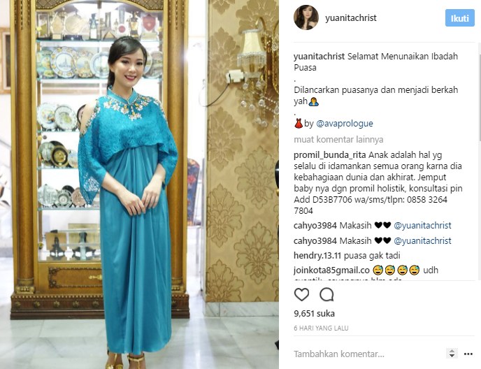 Cantik dengan kaftan, sahabat Sandra Dewi ini juga mendoakan agar puasa semua orang menjadi berkah.