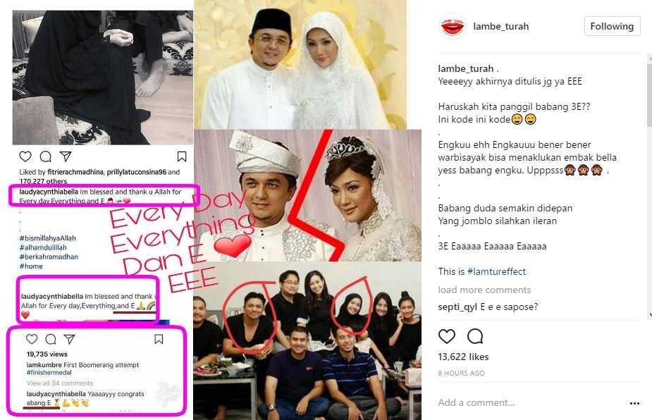 Melalui postingan yang di unggah ulang oleh akun gosip @lambe_turah, Bella seolah menunjukkan inisial sang kekasih baru yang berawalan huruf "E". "Im blessed and thank u Allah for Every day,Everything,and E," tulis Bella dalam caption fotonya, Minggu, 4 Juni.