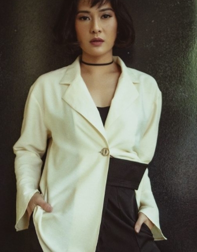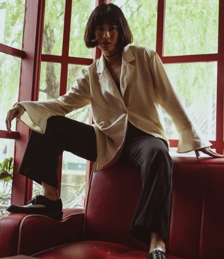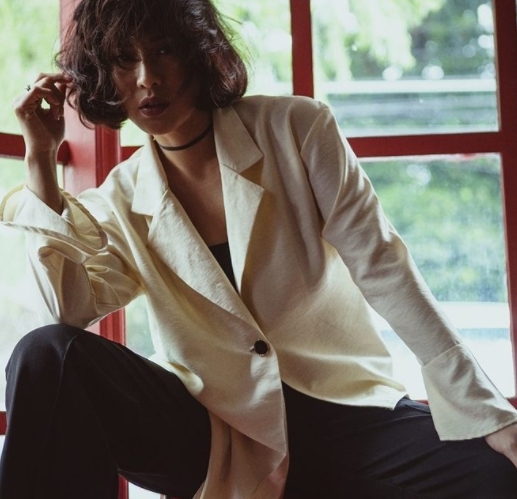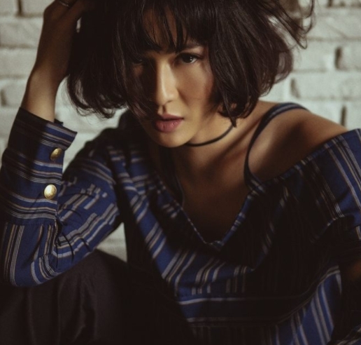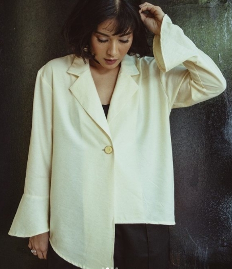 Tampil sedikit seksi dengan rambut berantakan, ibu dua anak ini terlihat memiliki karakter kuat dalam pemotretannya.