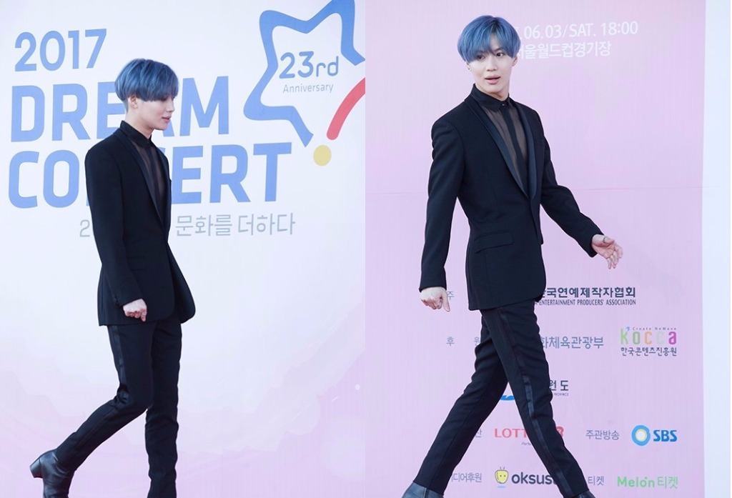 Taemin mewarnai rambutnya dengan warna biru bak bekuan es yang ada di kutub, dipadukan dengan kemeja tembus pandang yang dibalut jas hitam legam. Tidak didampingi member SHINee lainnya, Taemin hadir sebagai penyanyi solo dalam "Dream Concert 2017".