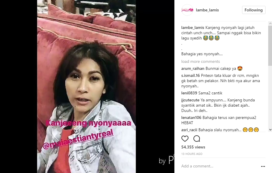 Melalui postingan yang diunggah ulang oleh akun @lambe_lamis itu, Tata tampak duduk santai di sofa berwarna merah. Tiba-tiba, ia membahas seseorang yang tengah jatuh cinta. "Yang lagi jatuh cinta, nyanyi terus," kata Tata sambil menggerakkan kameranya ke arah samping.
