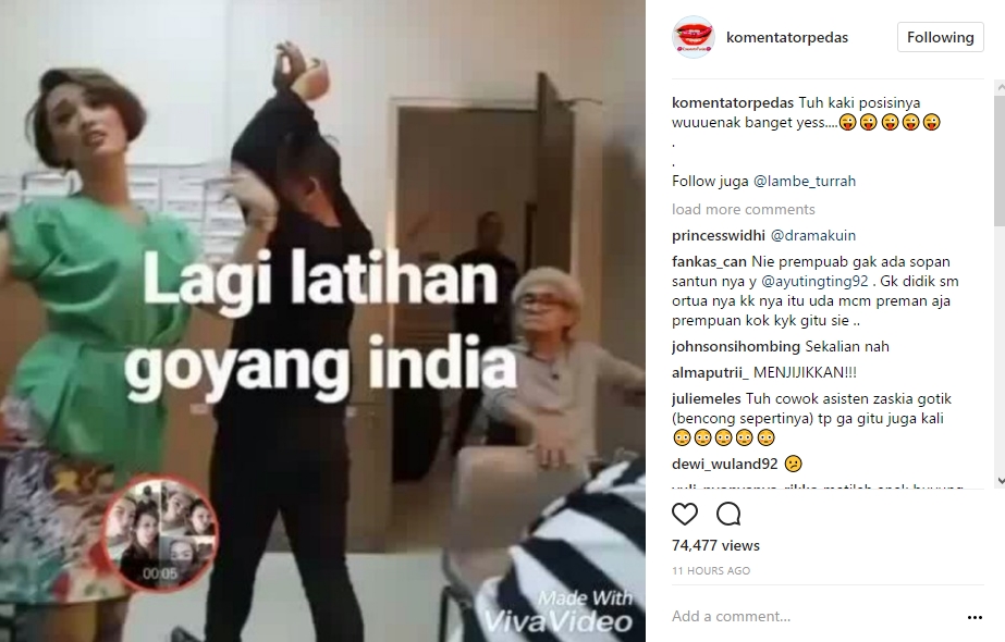 Dalam video rekaman itu, terlihat Zaskia Gotik tengah latian menari India. Dengan pakaian warna hijaunya, Zaskia dan seorang pria menggerakkan badannya secara gemulai.