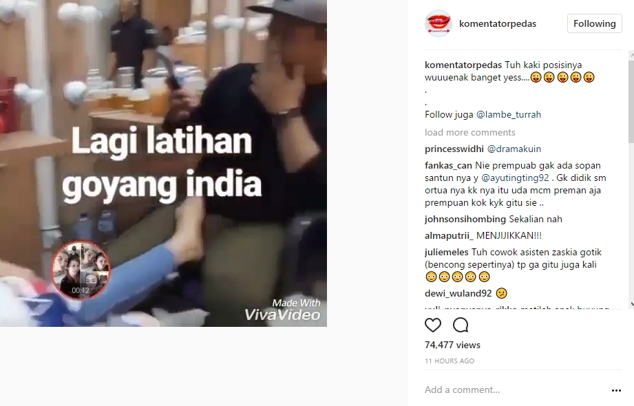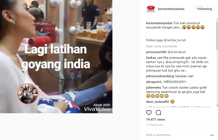 Begini reaksi netizen saat kaki Ayu Ting Ting berada di antara kedua paha seorang laki-laki.
