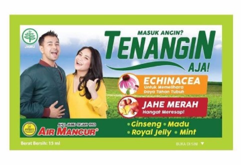 Menurut klaim dari akun Instagram resmi obat tersebut @tenanginaja, larutan pengusir masuk angin ini terbuat dari bahan herbal echinacea dan jahe merah. Produk inipun sudah dapat dibeli di gerai alfamart terdekat.