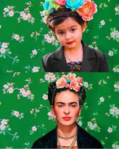 Kali ini Scout meniru gaya Frida Kahlo, seorang seniman/pelukis yang mendunia. Benar-benar keren ya idenya.