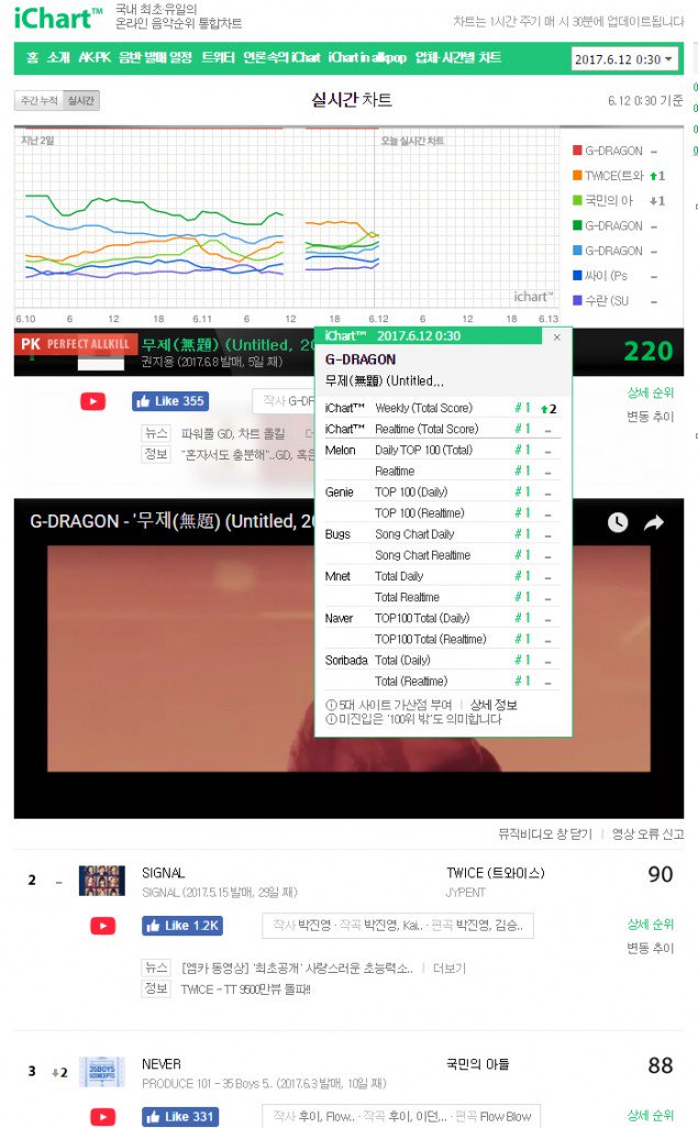 Kanal247.com - iChart memberikan update terbaru tentang prestasi yang diraih oleh single andalan G-Dragon "Untitled, 2014". Pada hari Senin, 12 Juni, pukul 00.30 waktu setempat, iChart menyatakan bahwa single comeback dari leader Big Bang itu berhasil meraih posisi pertama di 6 chart musik harian dan real time papan atas di Korea.