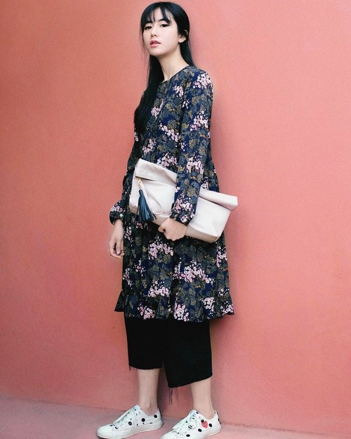 Coba padukan pleated floral dress dengan celana kulot di hari Lebaran. Untuk sepatu, kamu bisa memakai sneakers. Perpaduan ini bakal bikin kamu terlihat keren.