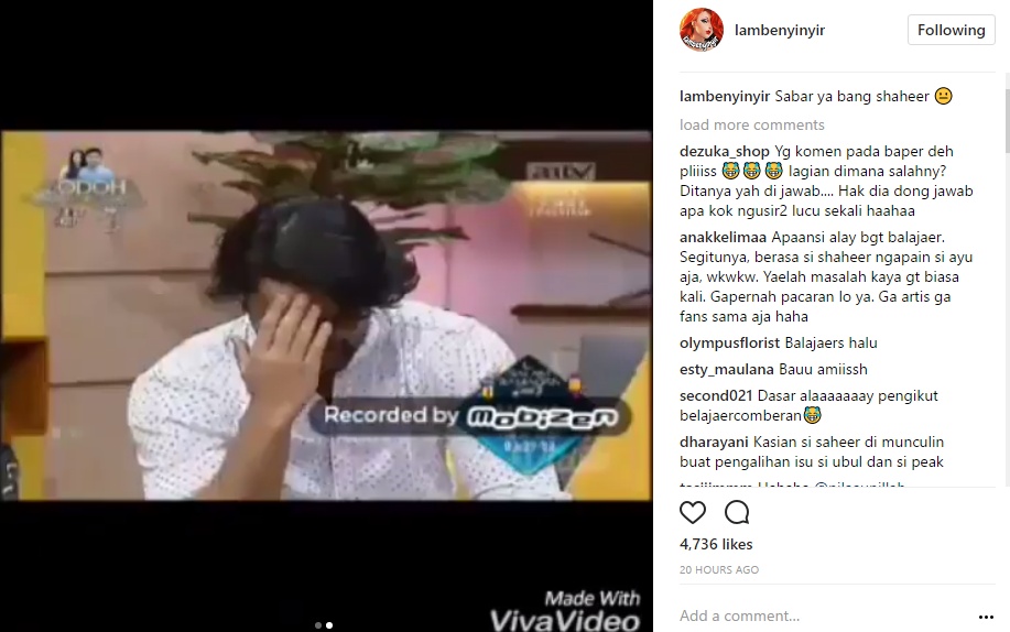 Mengetahui hal itu, beberapa netizen pun mengasihani Shaheer. "Kasian Abang gw elu si bang dlu mau aja d suruh gimmick ame die, pdhl die ny baper.. Jd ngunu kan," kata netizen melalui kolom komentar akun @lambenyinyir. "Shrusnya saher traumanya sama bala jaer," timpal lainnya.