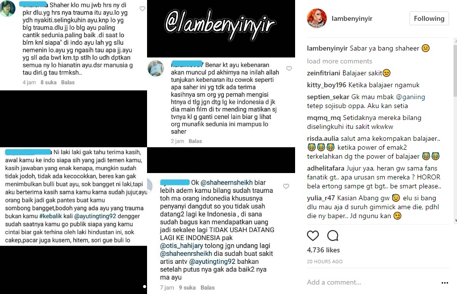 Jawaban itu pun membuat bala jaer, sebutan untuk fans fanatik Ayu Ting Ting geram. Tak hanya itu, bala jaer langsung menyerang akun Instagram Shaheer dengan komentar pedas.