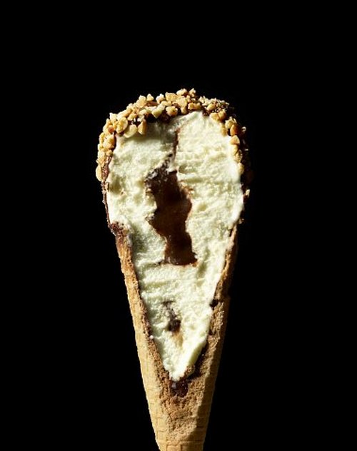 Untuk makanan dengan tekstur seperti ini, Omnes mengakalinya dengan menyiramkan susu saat pemotretan. Hanya sepersekian detik sebelum isi makanan berjatuhan.