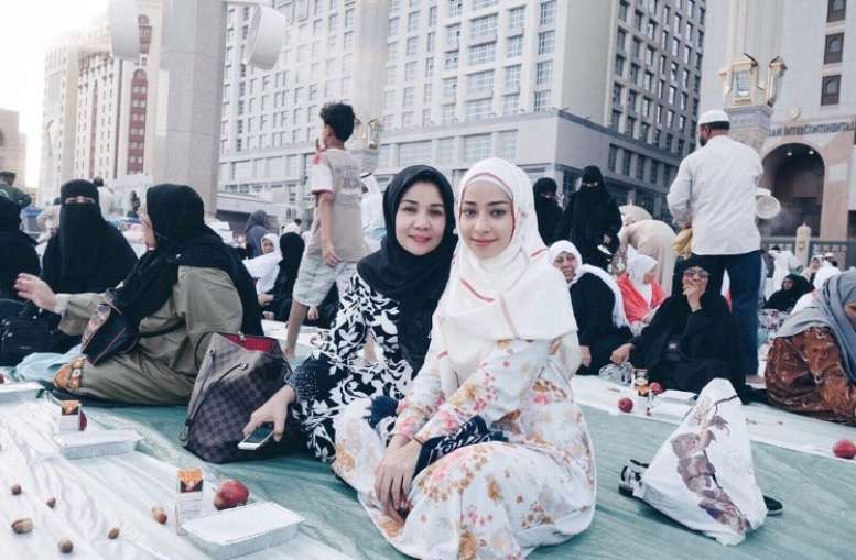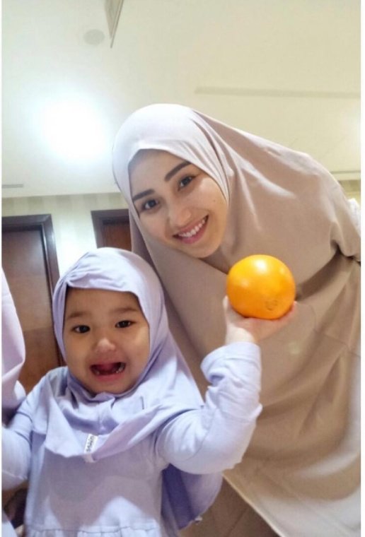 Tak ketinggalan, bersama sang anak Ayu Ting Ting makin cantik dengan hijab model besar yang menutupi kepalanya.