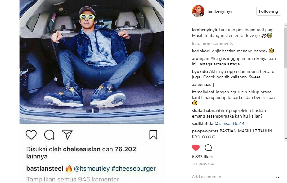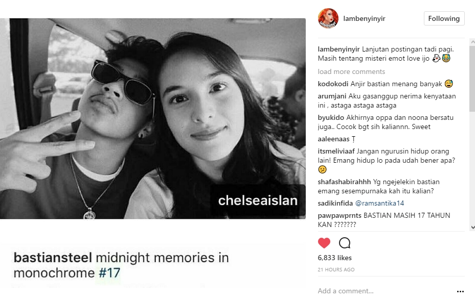 Tak sampai disitu, rupanya beberapa kali Bastian kerap memberi tanda hati itu pada Chelsea. Bahkan, di salah satu postingannya kedekatan Bastian dan Chelsea cukup terlihat.
