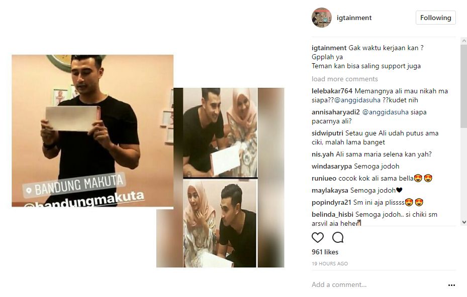 Mengetahui hal itu, netizen pun semakin gencar menjodohkan Bella dan Ali. "Udahhh... Ama ini aja, cocok kok," ujar netizen. "Semoga jodoh," ujar lainnya. "Ya Allah ya rabb smoga aja mreka berjodoh.. Aamiin," timpal lainnya.