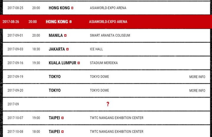 Berdasarkan pengumuman yang dirilis oleh YG Entertainment, leader Big Bang tersebut bukan hanya menambahkan satu kota untuk lokasi konser terbarunya, tapi enam kota sekaligus. Keenam kota tersebut adalah Hong Kong, Jakarta, Bangkok, Manila, Kuala Lumpur, dan Taipei.