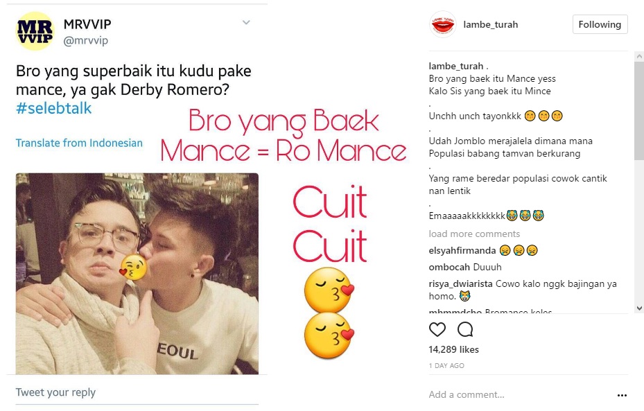 Begini reaksi netizen saat Derby Romero dicium oleh seorang pria.