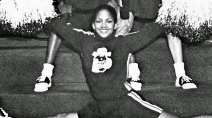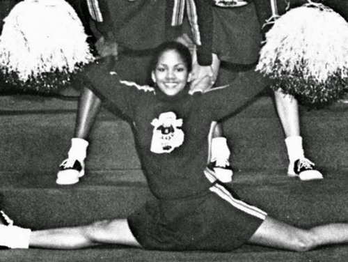 Halle Berry menjadi kapten tim cheerleaders di sekolahnya Cleveland, Ohio. Lihat pose splitnya yang keren itu. Berry ini semacam bintang di sekolah, ia juga menjadi ketua kelas dan editor koran sekolah.