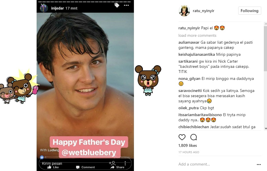 Melalui Instagram Story milik Jedar yang diunggah ulang oleh akun gosip @ratu_nyinyir, Jedar pun ikut memperingati hari ayah untuk Ludwig. "Happy Father's Day @wetbluebery," tulis Jedar dalam keterangan postingannya.