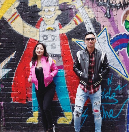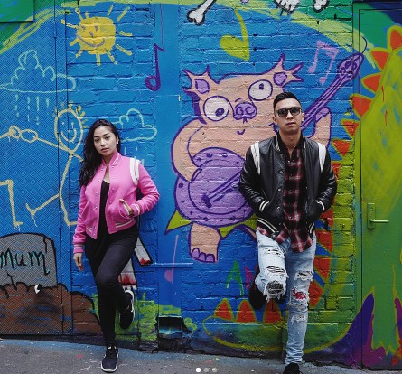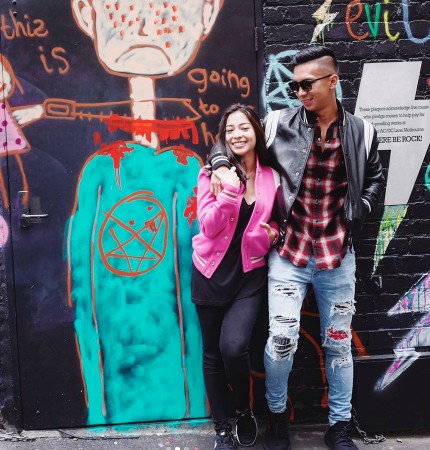 Keduanya memilih mengenakan jaket bomber dengan warna yang kontras untuk melengkapi busana trendy mereka.