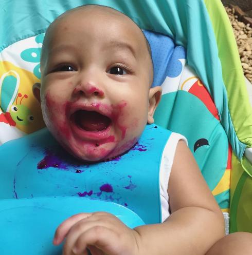 Nampaknya Baby Hasan sedang asyik menikmati buah naga ya nak...