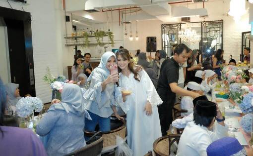 Tak hanya bersama fans, istri Vicky Kharisma ini juga mengundang anak yatim untuk berbuka bersamanya.