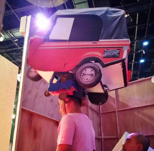 Ruben Onsu tak pernah mengeluh atas peran yang dilakoninya selama ini, seperti dalam foto, ia rela mengenakan hiasan kepala dengan bentuk bajaj.