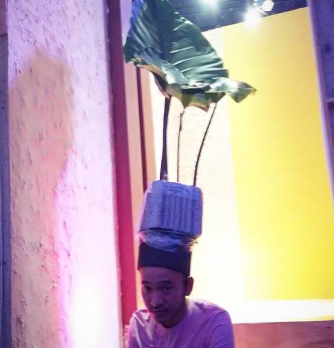 1. Ruben Onsu Mengenakan Headpiece Berbentuk Bajaj