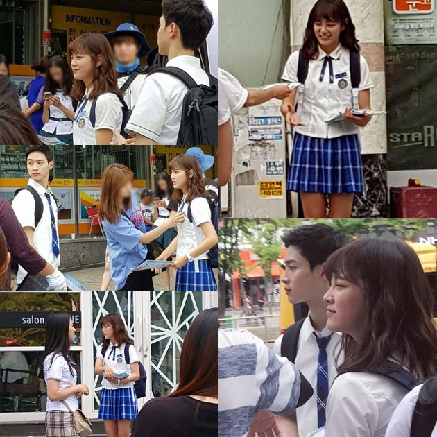 Kanal247.com - Serial baru KBS "School 2017" telah resmi memulai proses syuting. Beberapa foto dari set drama ini telah ramai dibicarakan di dunia maya. Kim Sejeong Gugugan yang berperan sebagai Ra Eun Ho, tertangkap oleh kamera fans dengan menggunakan seragam sekolah biru putih senada dengan aktor pendatang baru Jang Dong Yoon yang memerankan Song Dae Hwi.