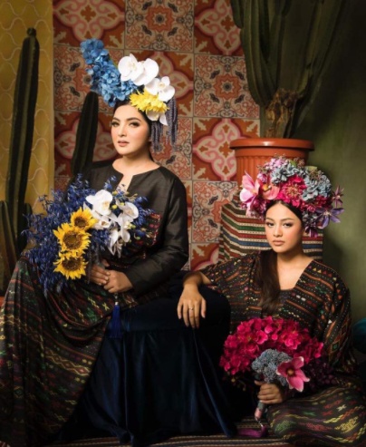 Seperti dalam foto ini, keduanya kompak berdandan dengan konsep tropis lengkap dengan bunga-bunga.