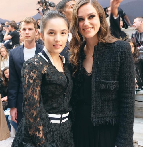Artis cantik multi talenta ini berkesempatan untuk berpose bersama Keira Knightley di Chanel Cruise Show 2017.