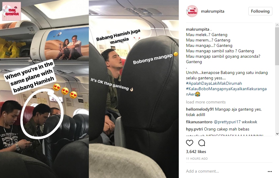 Hal tersebut diketahui melalui postingan akun gosip @makrumpita. Saat itu, Hamish tampak berada di dalam pesawat. Ia terlihat duduk di antara dua lelaki.