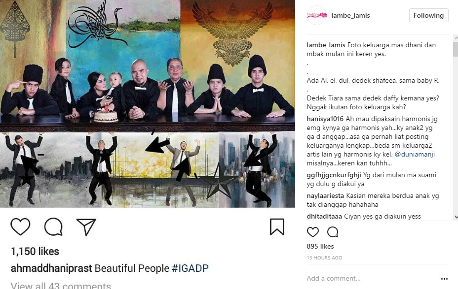 Begini reaksi netizen saat Ahmad Dhani membagikan foto keluarganya tanpa anak Mulan Jameela dari suami pertama.