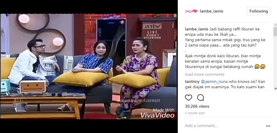 Kini, kabar itu mencuat kembali setelah Nagita buka suara soal liburan Raffi ke Eropa. Melalui rekaman video yang diunggah oleh akun @lambe_lamis, mula-mula Vega Darwanti menanyakan soal liburan Nagita dan Raffi.