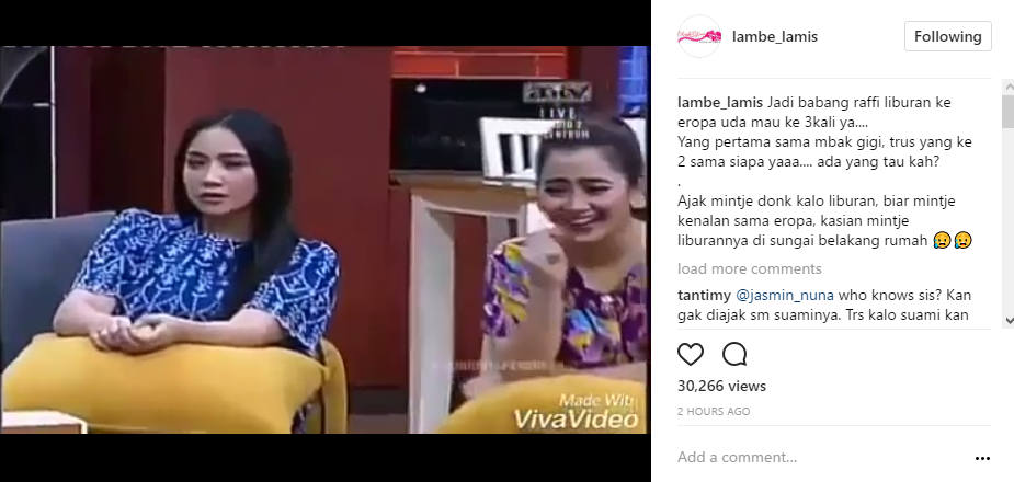 Mengetahui video rekaman itu, tak sedikit netizen menyebut Raffi bersama Ayu saat liburan kedua ke Eropa. "yg kedua bukan ke eropa mba @vegadarwanti tp ke depok wkwkwkkwk," sindir netizen. "Yg ke 2 sm ayu tingting kan rame di gosip kemaren pan..gigi selow aje di lihatnya," sindir lainnya. "Abis lu att sekarang nagita berani sedikit² buka²n.." timpal lainnya.